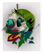 The artistic approach of the artist denotes an interest for overlapping layers. We discover a decomposed and interactive perspective where the geometry of the forms, inspired by the typography, creates a balance of power with the lively colors.